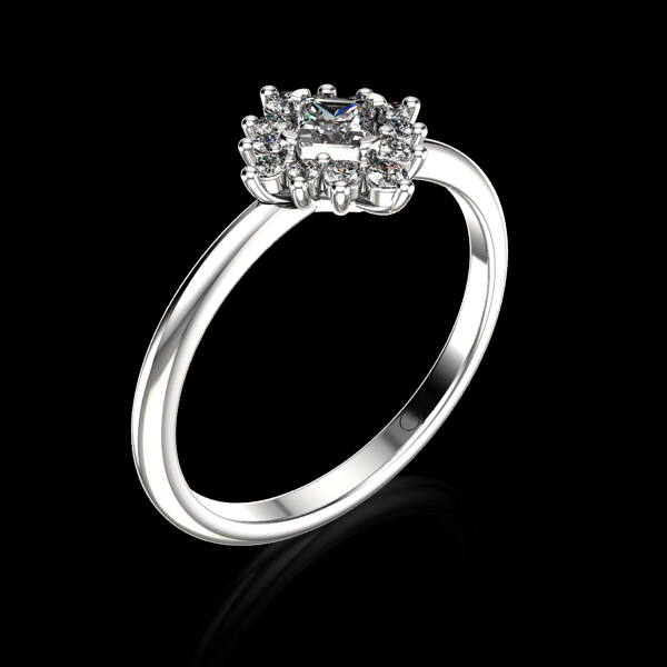 Center Stone: Princess-Cut Diamond Accent Stones: 12 Brilliant-Cut Diamonds Available in white gold, yellow gold, rose gold, 10K,14K,18K and platinum. Please contact us for pricing and more information.