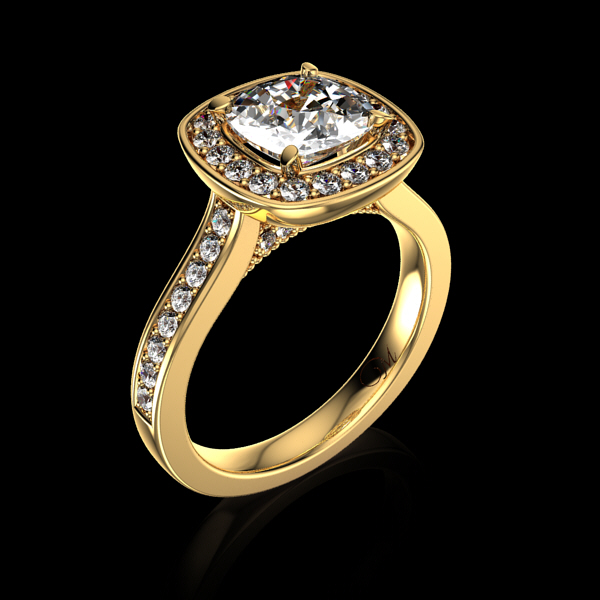 Center Stone: Cushion-Cut Diamond 1.10ct. Accent Stones: 45 Round Diamonds 0.45ct.tw. Available in white gold, yellow gold, rose gold, 10K,14K,18K and platinum. Please contact us for pricing and more information.