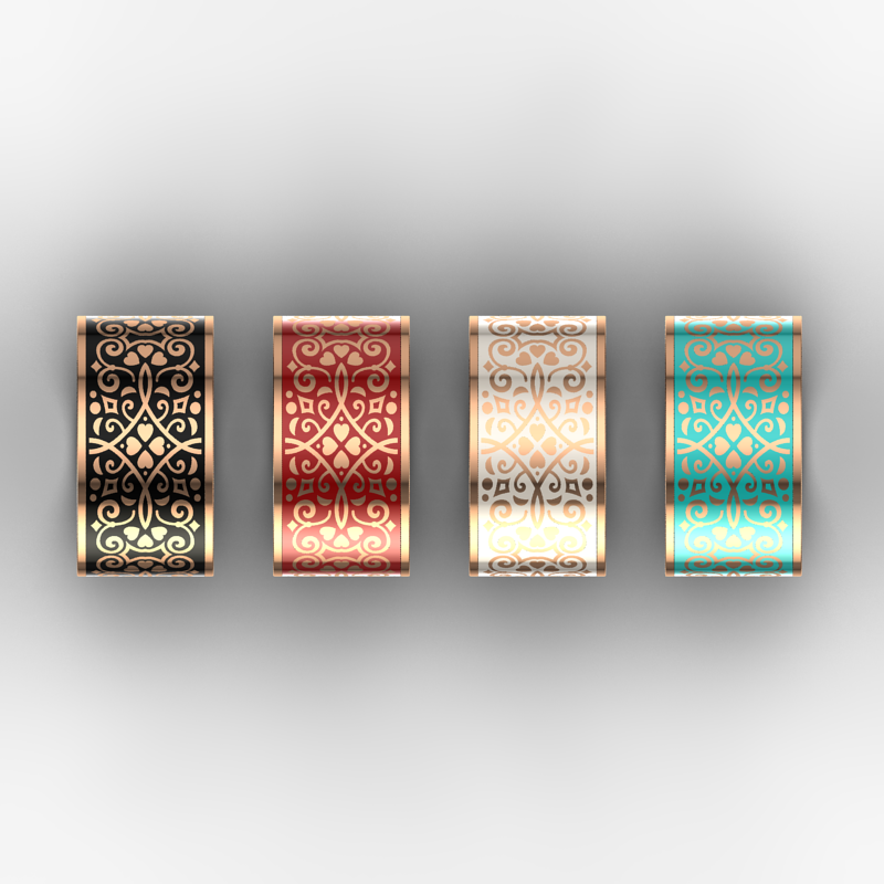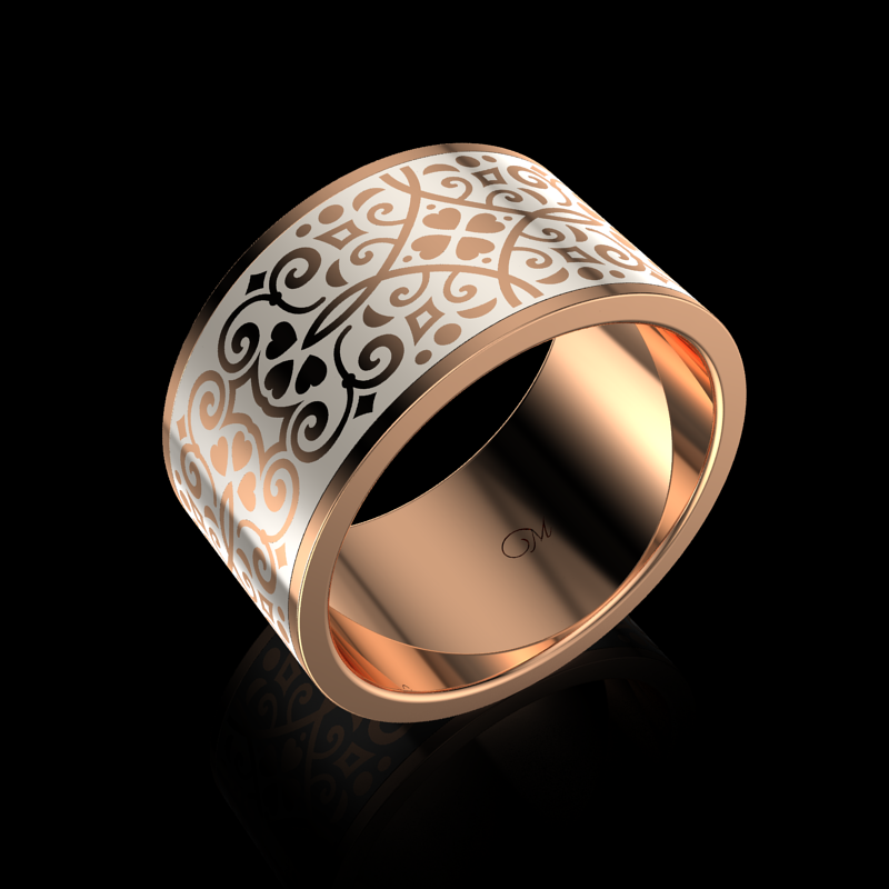 Black Ceramic and Gold. Available in white gold, yellow gold, rose gold, 10K,14K,18K and platinum. Please contact us for pricing and more information.