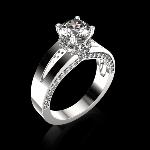 Ring Main Stone: Round Diamond 1ct. Accent Stones: 56 Round Diamonds 0.50 ct.tw. Available in white gold, yellow gold, rose gold, 10K,14K,18K and platinum. Please contact us for pricing and more information.