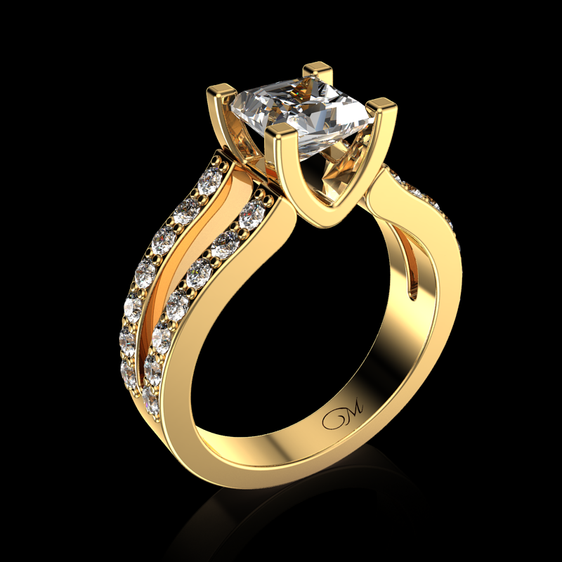 Center Stones: Princess-Cut Diamond 5.5mm Accent Stones: 28 Brilliant-Cut Diamonds Available in white gold, yellow gold, rose gold, 10K,14K,18K and platinum. Please contact us for pricing and more information.