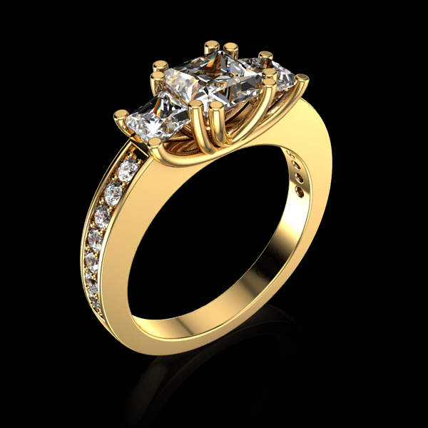 Center : 1 Princess-Cut Diamond 0.90ct.