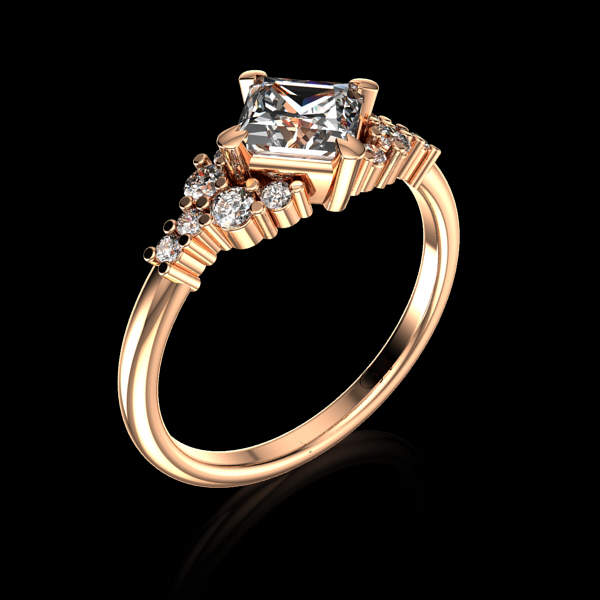 Main Stone: Princess-Cut Diamond 0.75ct.