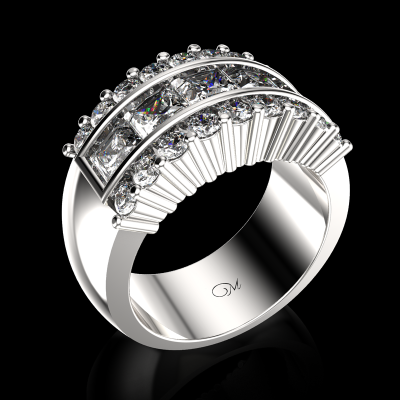 5 Princess-Cut Diamonds 2 cts.tw. 18 Round Diamonds approx. 1.05 ct.tw. Available in white gold, yellow gold, rose gold, 10K,14K,18K and platinum. Please contact us for pricing and more information.