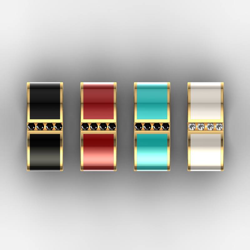 Gold and Ceramic. 4 Stones 2mm Width: 9mm Vast Choice of Ceramic Colors. Available in white gold, yellow gold, rose gold, 10K,14K,18K and platinum. Please contact us for pricing and more information.