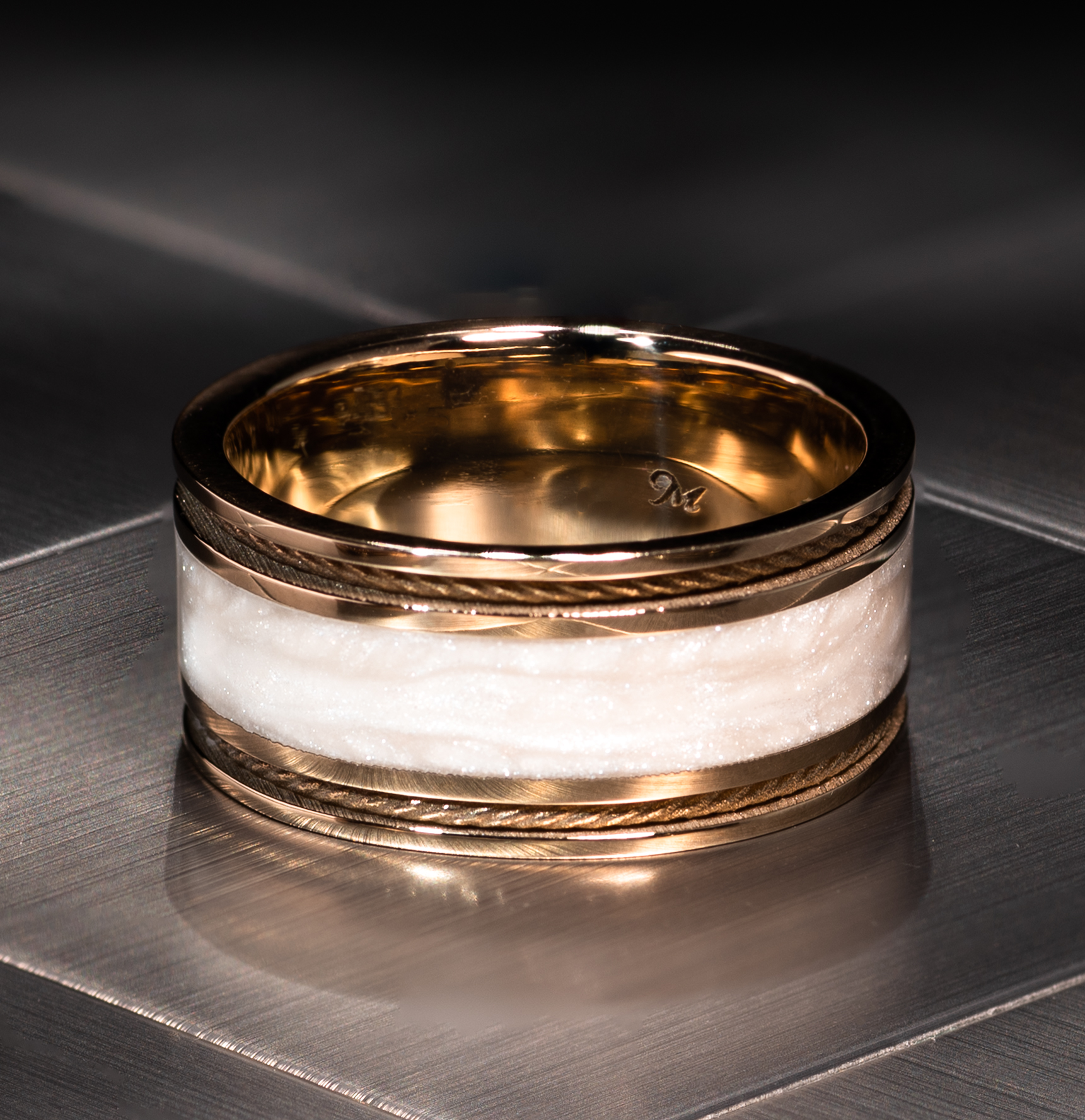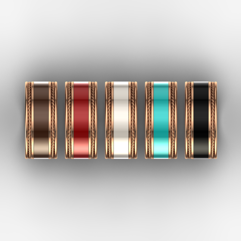 Gold and Ceramic. Width: 10mm Vast Choice of Ceramic Colors. Available in white gold, yellow gold, rose gold, 10K,14K,18K and platinum. Please contact us for pricing and more information.
