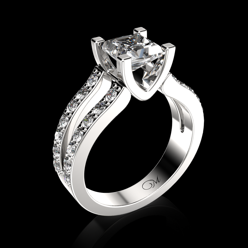 Center Stones: Princess-Cut Diamond 5.5mm Accent Stones: 28 Brilliant-Cut Diamonds Available in white gold, yellow gold, rose gold, 10K,14K,18K and platinum. Please contact us for pricing and more information.