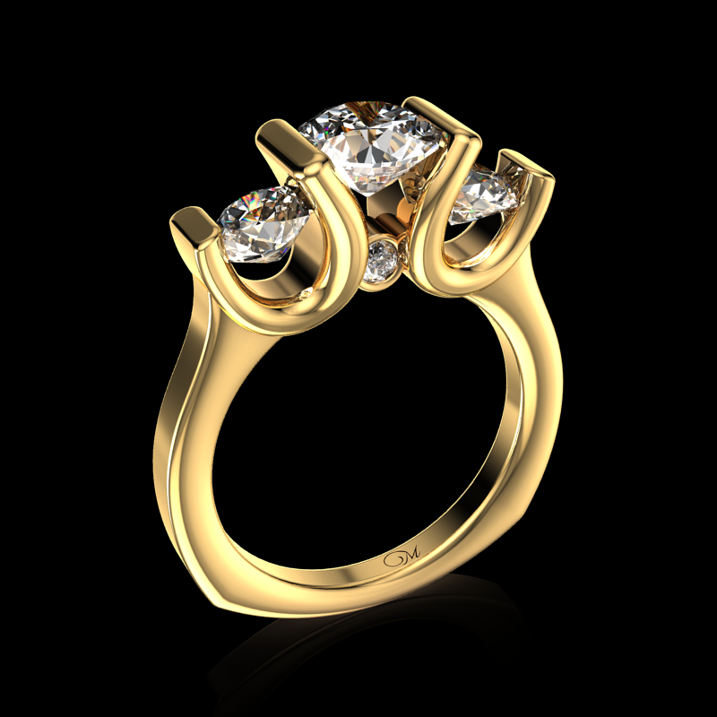 Center Stone Round-Cut Diamond 5.9mm Side Stones: 4.8mm Accent Stones 2 Round-Diamonds 0.15 ct.tw. Available in white gold, yellow gold, rose gold, 10K,14K,18K and platinum. Please contact us for pricing and more information.